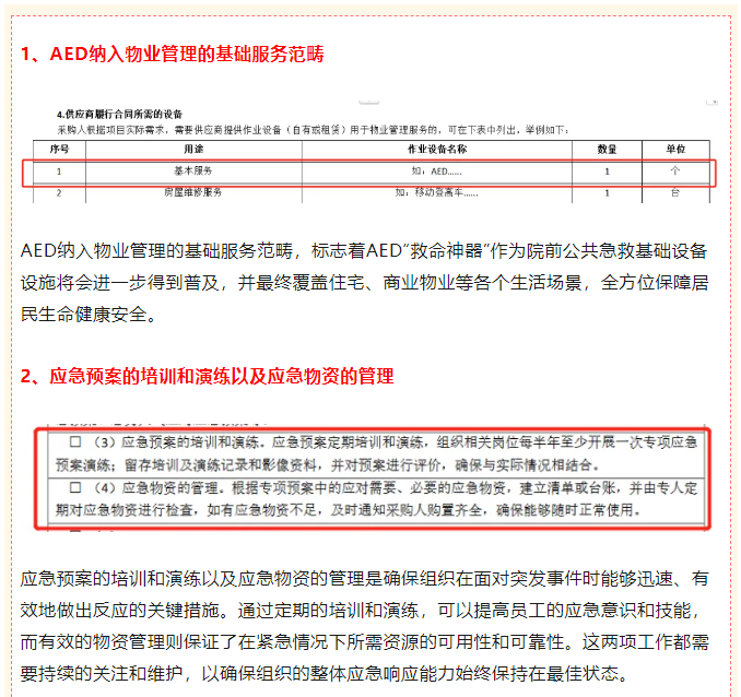 近日,国家财政部和卫健委联合发布了重要政策,将AED(自动体外除颤器)设备正式纳入物业管理基础服务范畴。这一政策的出台,标志着AED设备在公共社区和办公场所的普及将进入一个新的阶段,对于提升我国社会急救能力和居民生命安全保障具有重要意义。