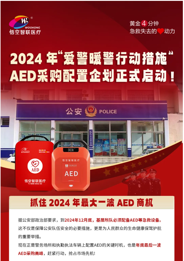 通过安装AED设备和专业的培训,悟空医疗旨在为公安干警提供更加完善的安全保障。