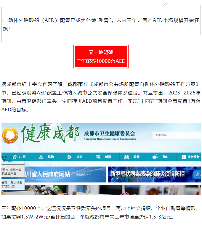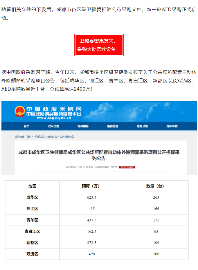 卫健委:大批医疗设备订单发布!新一轮AED采购正式启动!