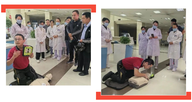仪式结束后,青岛悟空智联医疗科技有限公司有关工作人员通过理论讲解和实际操作相结合的方式向大家重点讲解了AED的具体使用方法。