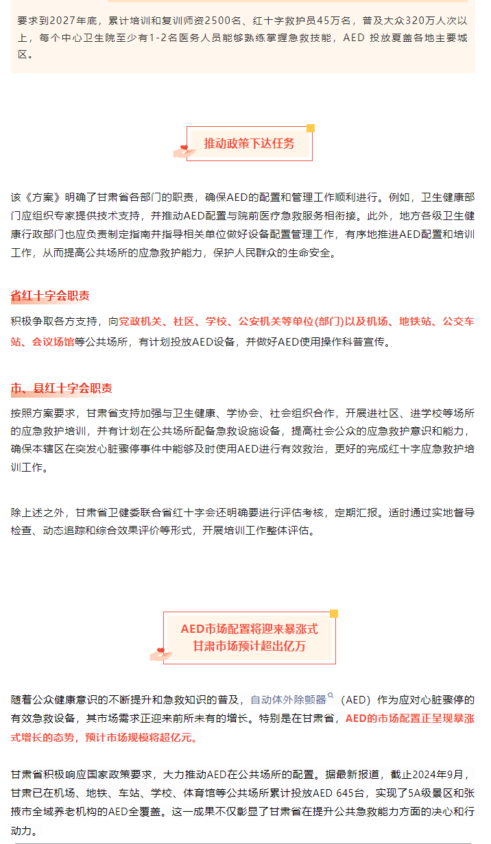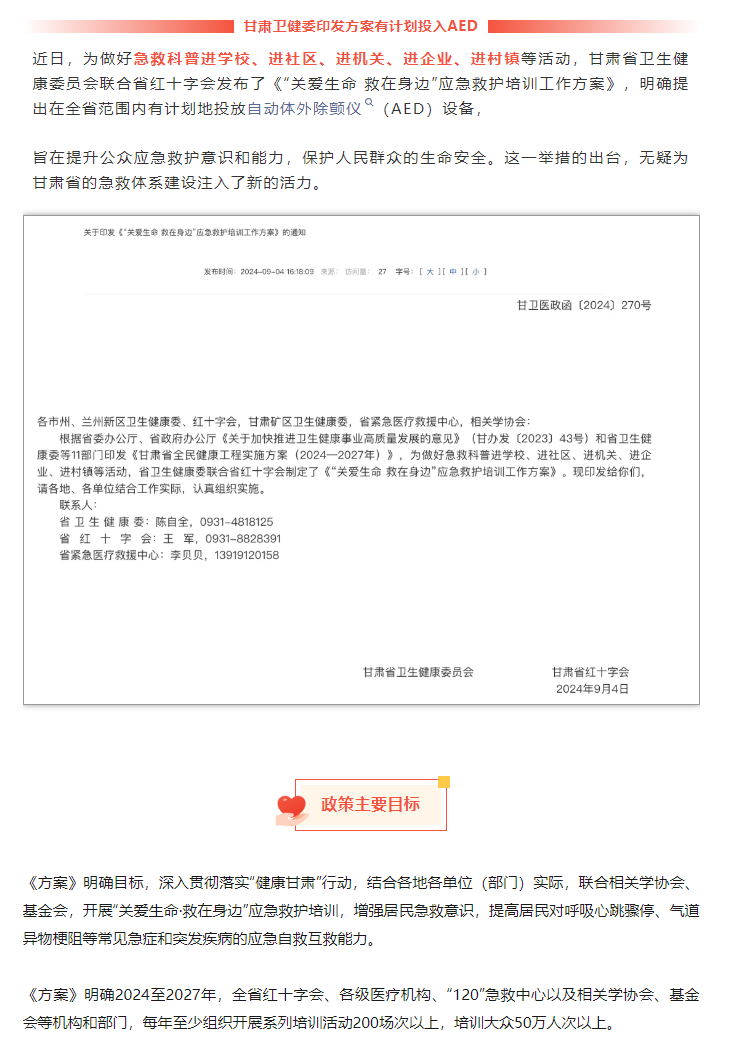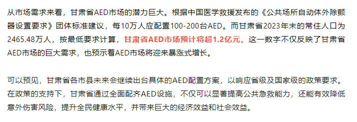 甘肃卫健委发布:推进AED有计划投放,AED市场预计超亿元